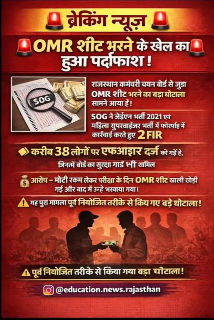 Rajasthan OMR Scam क्या है जानिए कैसे खाली OMR शीट भरकर लाखों की नौकरी बेची गई। SOG की रिपोर्ट और EO/RO, SI,और अन्य भर्ती घोटाले का पूरा सच यहाँ पढ़ें।
